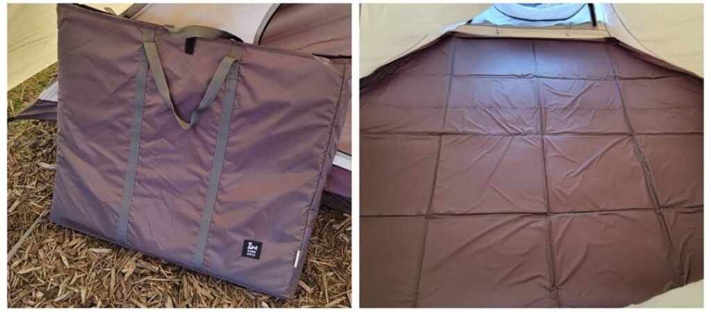 LOLOの インナーテント用マット は別売りで、サイズは 360×220cm、厚さは 5mm、重さは 3.6kg で、六角形の形状に完全にマッチ。快適に寝られる広さをサポートします。