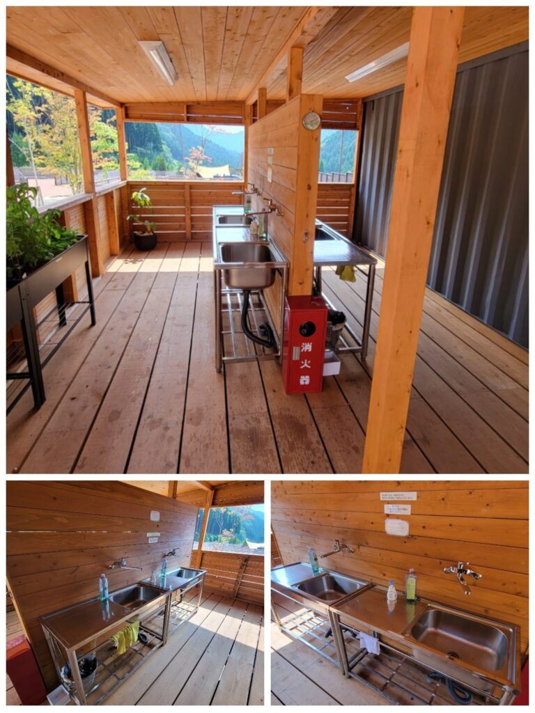 炊事場は4口あり、どの蛇口からもお湯が出るので快適に使用できます♨