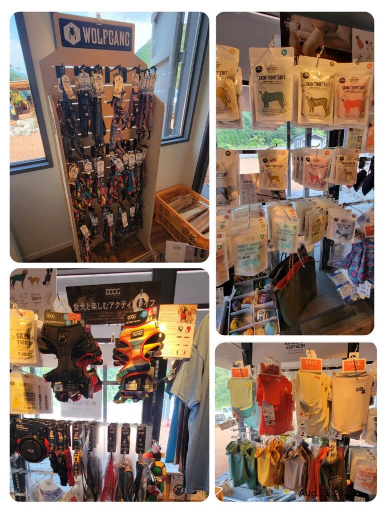 管理棟内は、まるでペットショップのように犬用グッズやフードがズラリと並んでいます。