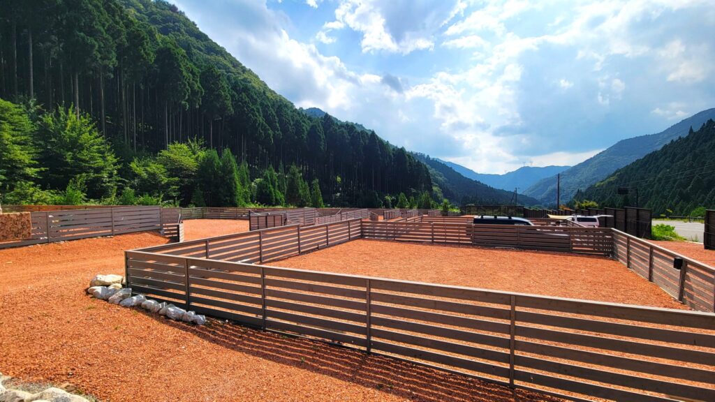 滋賀県東近江市にある【奥永源寺BASE】は、ペットショップ並みに品揃え豊富な売店や清潔な施設、柵で囲まれた安心の区画サイトが魅力の、ペット連れに人気の高規格キャンプ場でした。