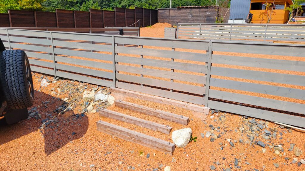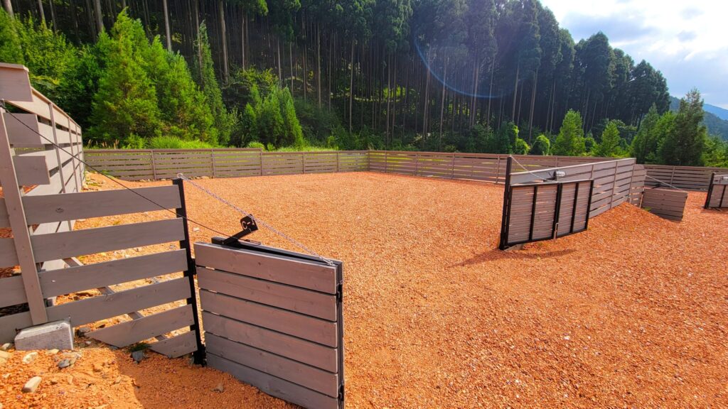 高さが約110㎝ある柵で囲まれていて、入口がしっかり閉まるので、ペットも安心してノーリードで遊べる区画サイトです。