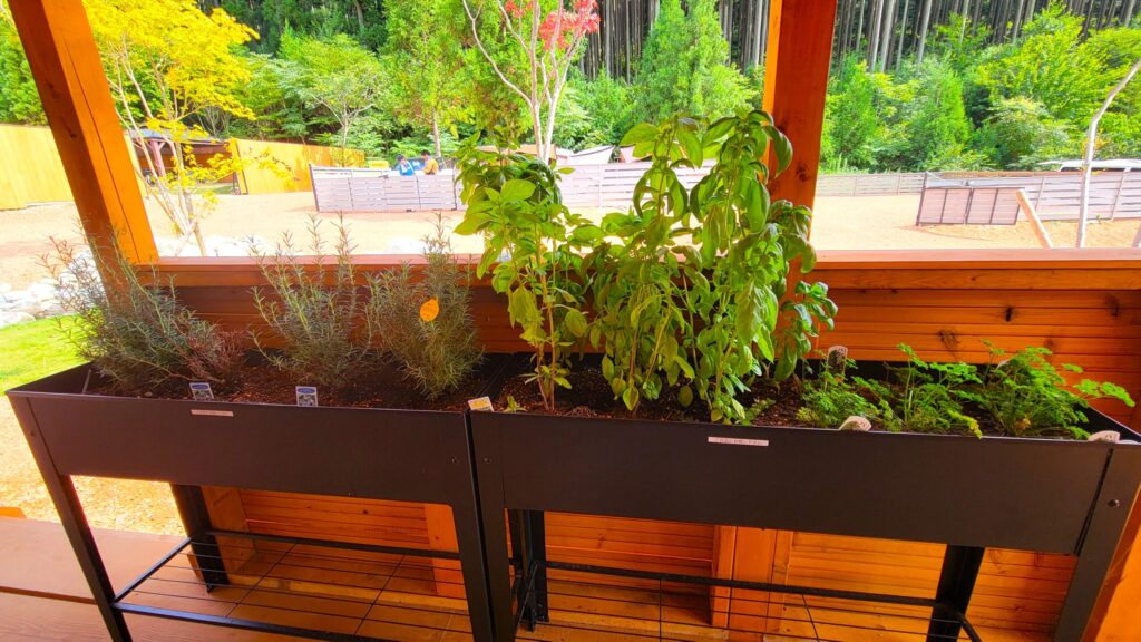 炊事場にはバジル、パセリ、ローズマリーなどのハーブが植えられており、キャンプ利用者は自由に使うことができます。