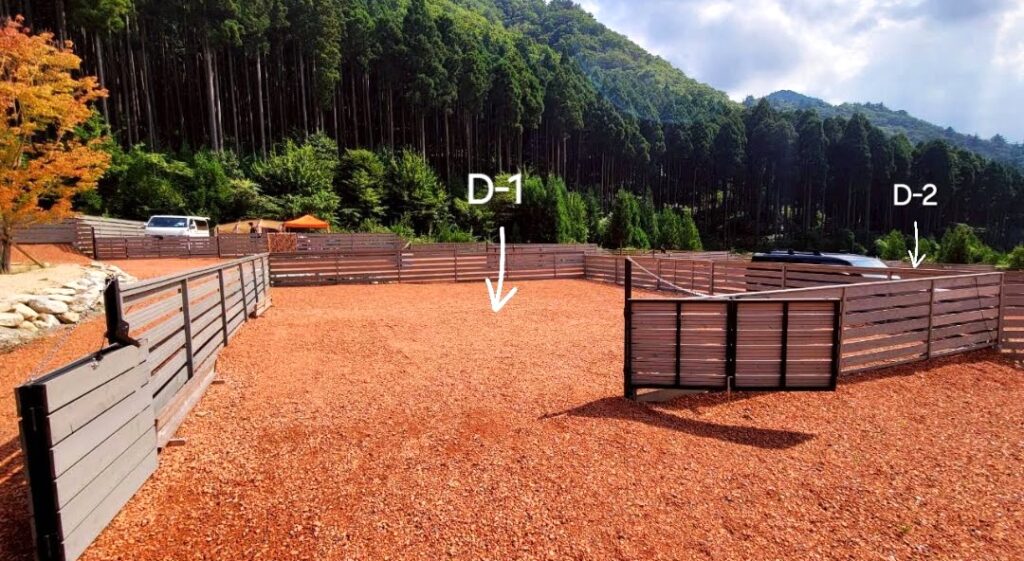D-1・D-2サイトは、柵を開ければつながって行き来できるため、友達同士やグループでの利用にも最適です。