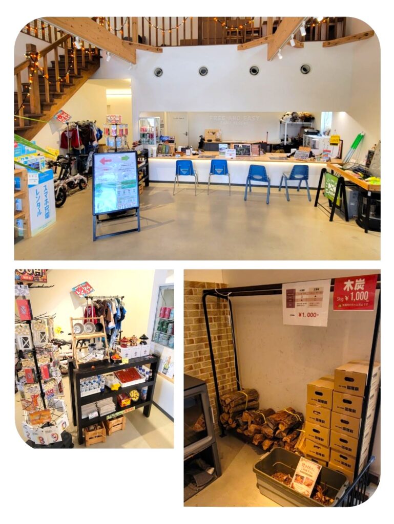 建物内には売店もあり、オリジナルシェラカップをはじめ、【洗剤、ほりにし、塩・醤油、焚き火シート】が売られています。その他のキャンプ道具は隣のショップにも販売しています。
