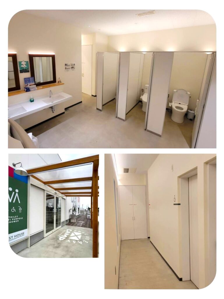 トイレは建物内に設置されており、男女別+多目的トイレも完備。すべて暖房便座・ウォシュレット付き。トイレ内はとても広いので混みあうこともなく快適に利用出来ます。
