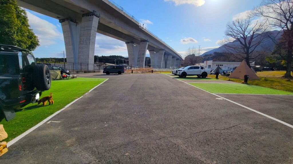今回はクルマの横付けができる理由で「RVサイト」を利用しましたが、プライベートサイトテントは、駐車場からサイトまでの搬入距離が意外に近かったので、テントを建てるならこちらの方でも良かったかなと感じました。