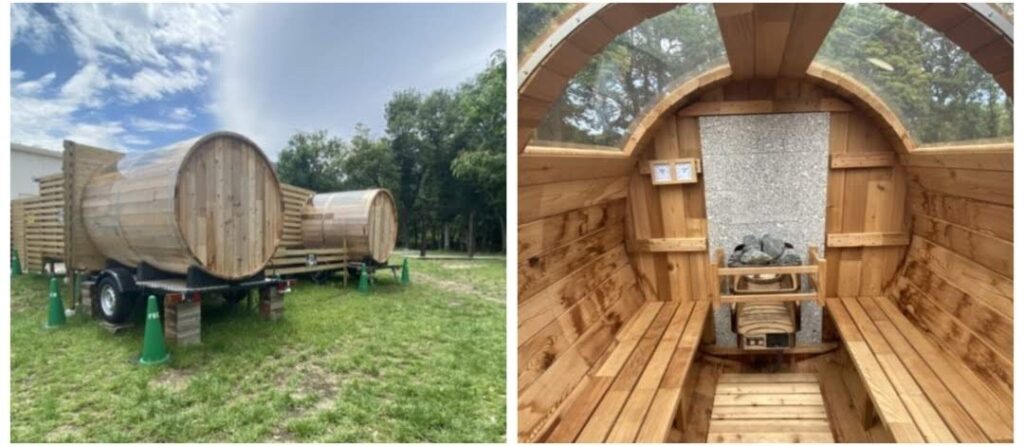 施設横にはバレルサウナが2か所あり、宿泊者は100分2,000円で利用できます。予約は当日チェックイン時にスタッフへ伝える方法のほか、公式HPからも予約可能です。