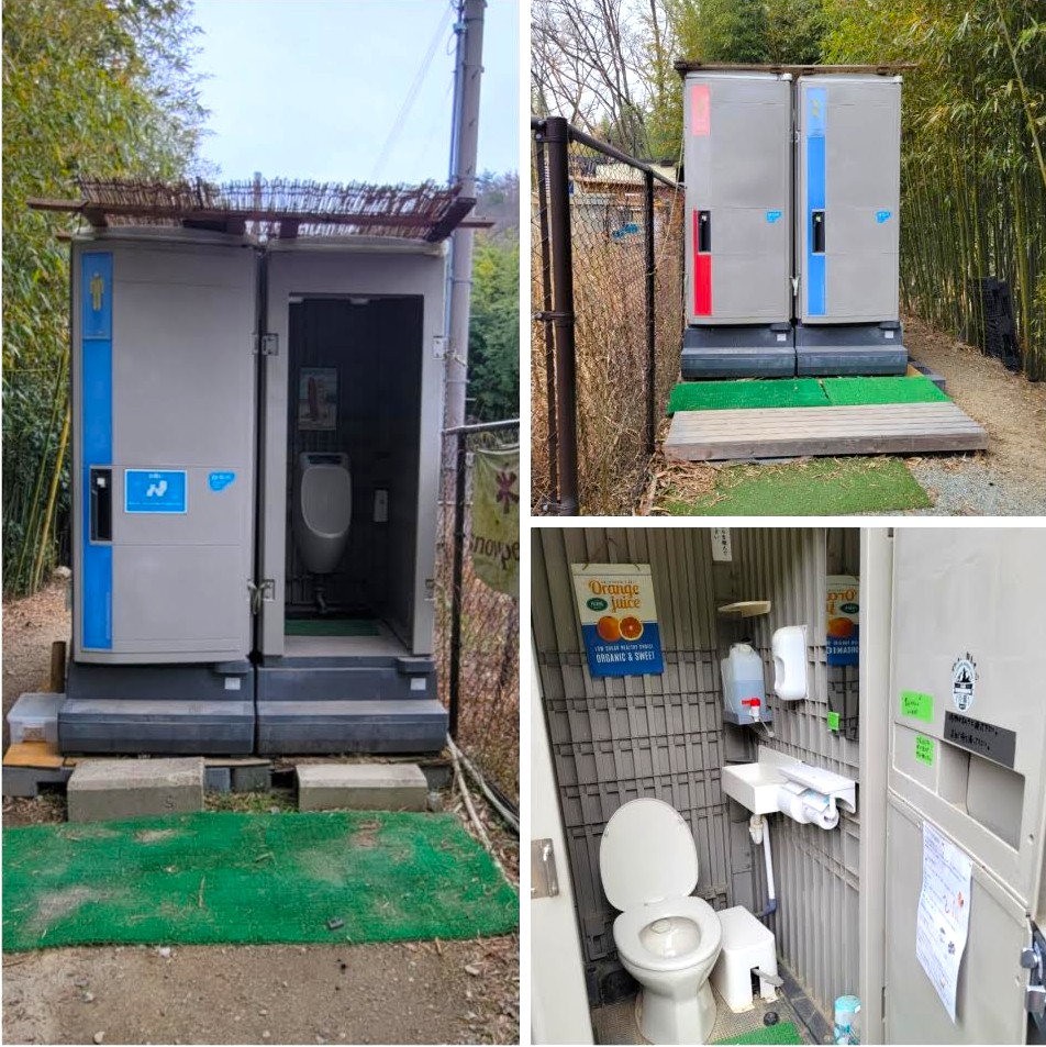 農地エリアの入口付近には、炊事場とトイレがあり、トイレは男性用2か所・女性用1か所あり、エリアの1番遠いサイトからでも徒歩1分程でアクセス出来ます。