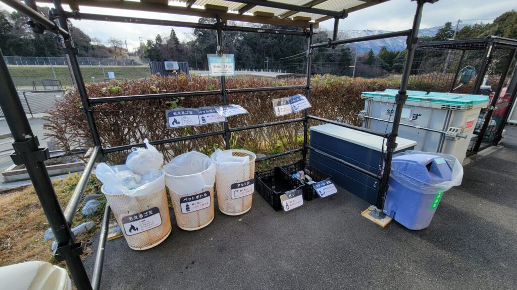 ゴミステーションはトイレ・シャワールーム横にあり、指定袋不要で、市販の袋でゴミ捨て可能です。