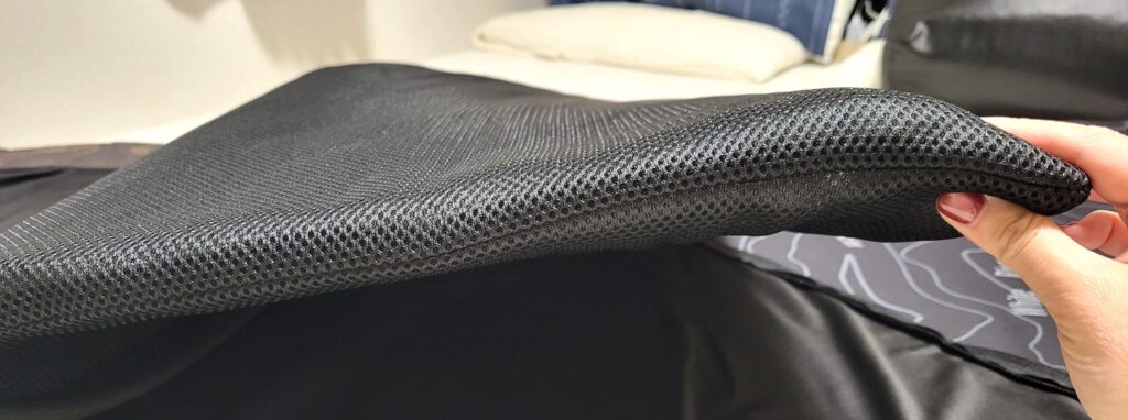 素材には、年中快適な通気性を確保し、約95%が空気でできた立体構造素材「エアーラッセル」を採用。
