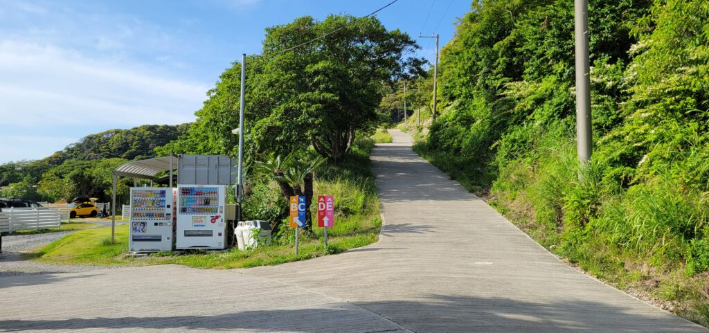 Dフリーサイトと、Eソロサイトはこの坂を登った所にあります。