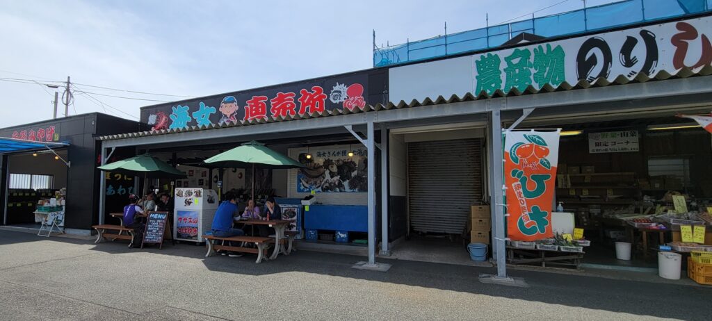 「漁師料理かなや」の隣にあるテナントは、海女さんが採ってきたウニやアワビなど、キャンプ飯用に捌いてくれます!