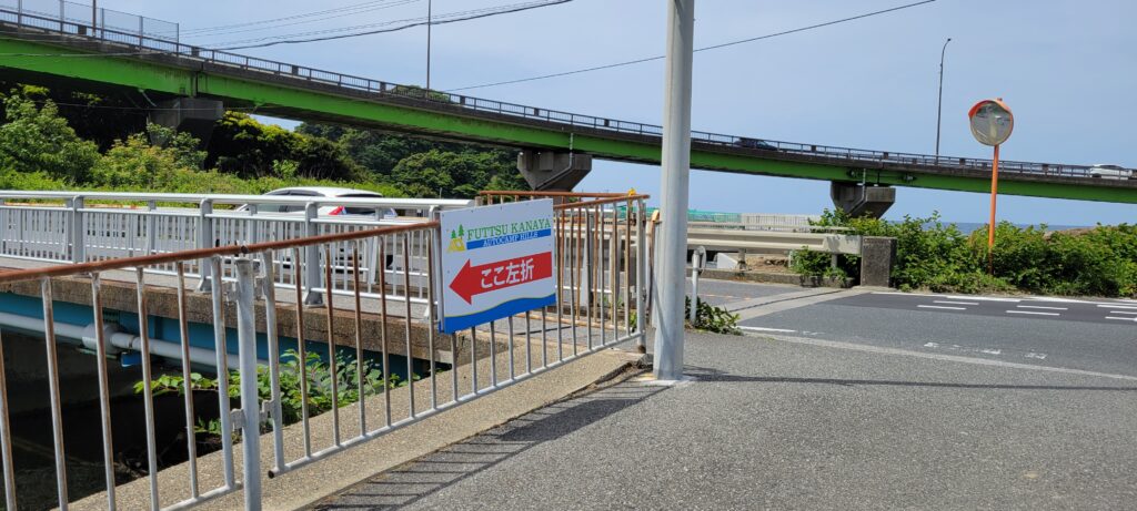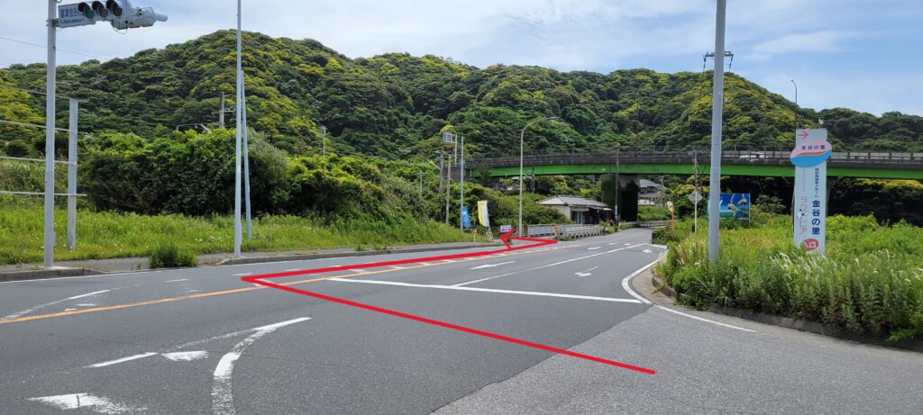 富津金谷IC降りて信号右折、赤い矢印の道を入って5分程です。