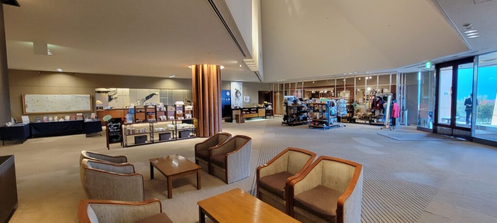ホテルのエントランスは広々としたスペースになっており、1階にはフロントと売店があります。
