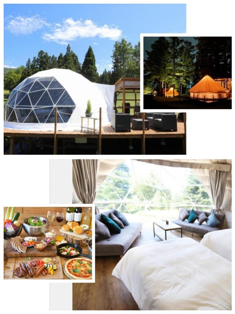 部屋タイプは、人気のベルテントと快適なドームテントから選択可能。予約は公式HPから行うことが出来ます。
