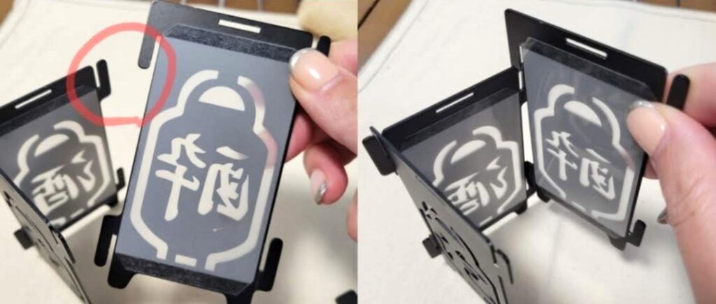 セット内容は、「泡」「酒」「酔」「呑」の4枚のステンレスパネルに加え、吊り下げ用パネルの合計5枚。はめ込むだけで簡単に組み立てられる、手軽なランタンシェードです。