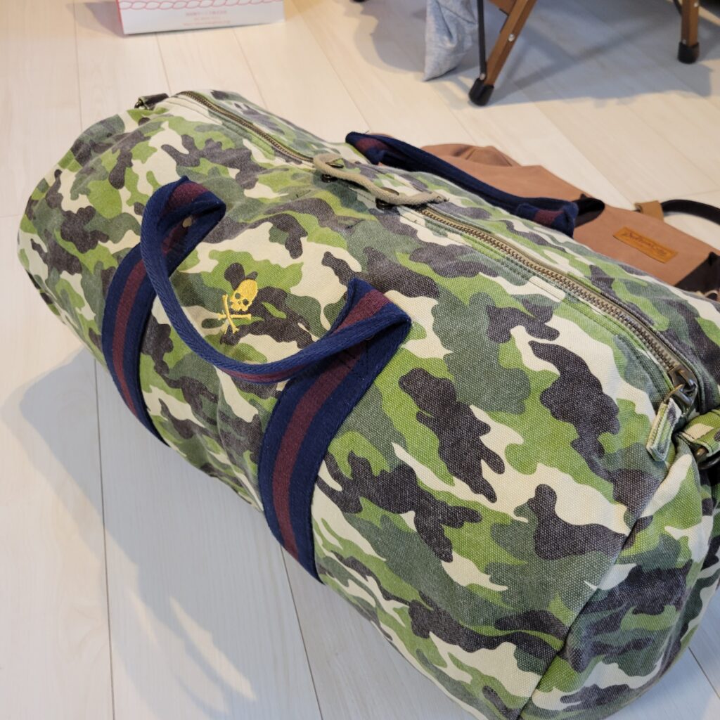 結果は一目瞭然。普通のボストンバッグはすぐにパンパンになりましたが、DULTONのワックスキャンバス ログバッグはまだ余裕があったので、試しに追加でバスタオルを3枚入れても問題なく収まりました。