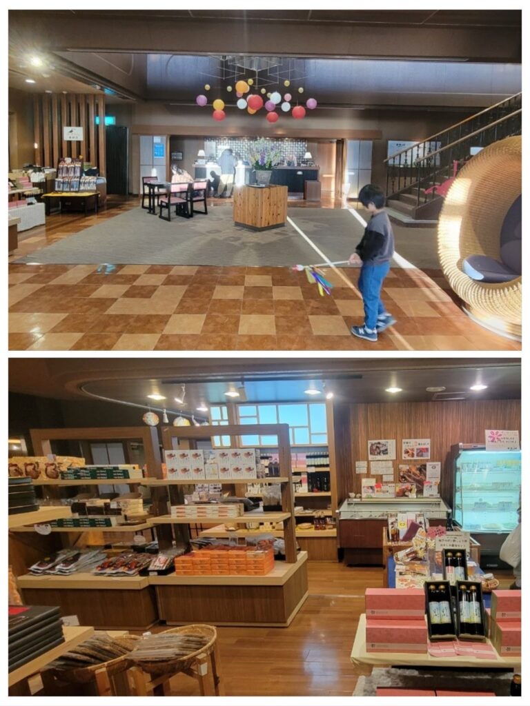 ロビーはとても開放感があり、1階にはお土産店や、キャンプ中に利用するトイレもこのフロアにあります。