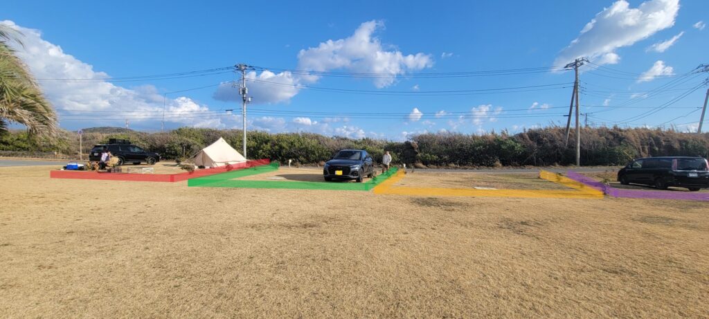 オートサイトは向かい合って4区画ずつあり、広さの種類は2種類あります!