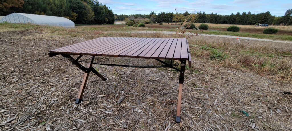 WAQのウッドテーブル は、横幅90cmの広さで、夫婦やカップルのキャンプにちょうど良いサイズ感。テーブルの下には便利な収納ネット付き。テーブル自体にやや重量はありますが、その分しっかりとした作りで 耐荷重が30kg。ダッチオーブンなど重たい調理器具を置いても安定感バツグンのテーブルです。